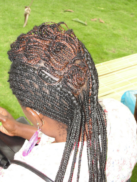 Recently, I attended a friend’s Kitchen Party. This is a function somewhat similar to a bridal shower, but focused on equipping a bride-to-be with all the necessary kitchen items. Usually, a Kitchen Party is an opportunity to check out the latest fashions in chitenge outfits (made from African print fabric). However, since starting this blog, I find myself also drawn to hairstyles, especially those which are attractive and make an effort not to be boring. So, I was very pleased to be standing behind a lady with a very funky hairstyle.
