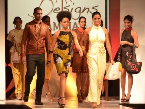 | Towani is escorted by her models at the Origin Africa Designers Show-case in Mauritius, March 2011 |