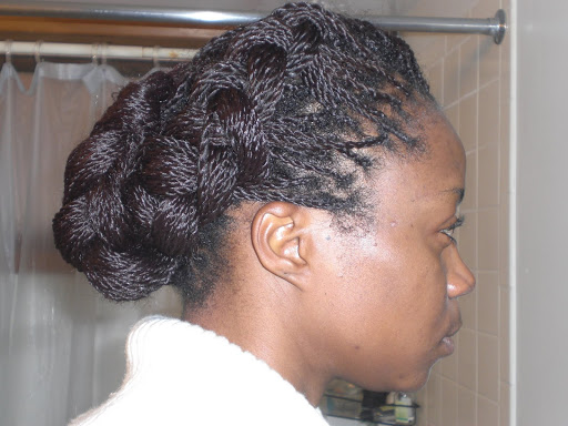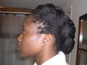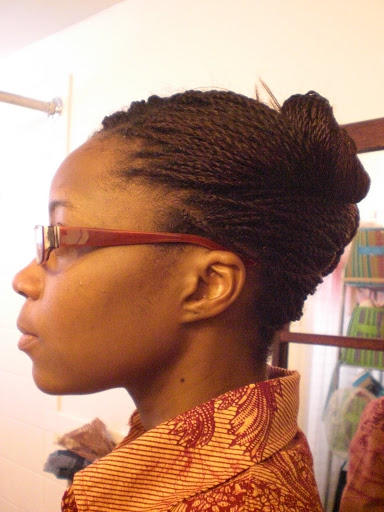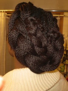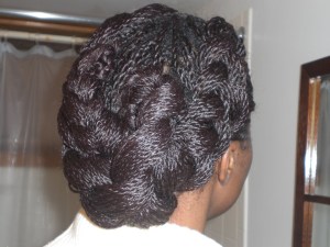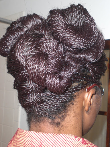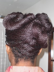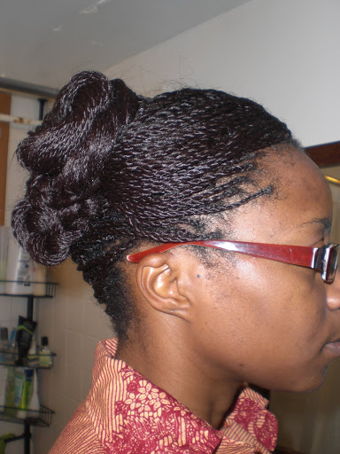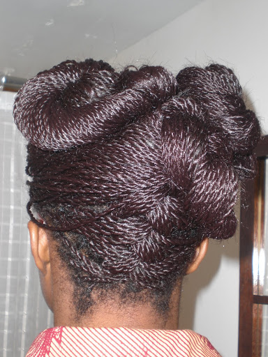 I took these pictures in January of this year and never quite got around to posting them. I had long twists in my hair and put together some interesting up-dos.