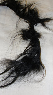 Both of these picture demonstrate what is left of a long weave that I had in March 2011. It began life as a shoulder length weave, but I just couldn’t get used to it, so after one week, I decided to cut it to chin length. I kept the weave for another two weeks and then took it out. I resolved to try and do what others advised by re-using it. I started by washing my hair the morning I was going to take out the weave. I made sure to apply a lot of coconut oil to ensure my hair was well moisturised when removing the weave. At the salon, I collected all the hair in a bag, and took it home.