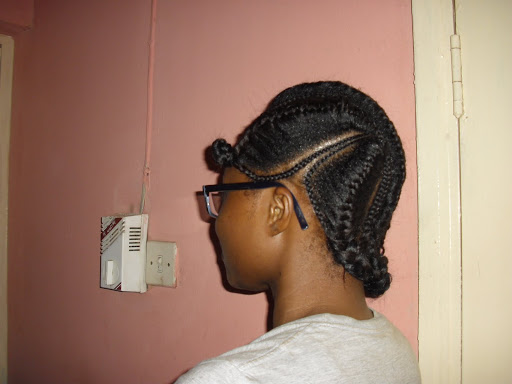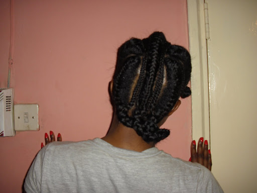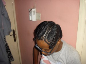 So when I got back from the market stall, this is what my hair looked like… well actually, she had left the ends hanging down and I felt that they looked, better and more authentic twisted into little knots and so that’s what I did.