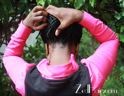This style is for when I want to give my hairline a bit of a rest because it has been up off my face. It is basically, a low and loose bun.