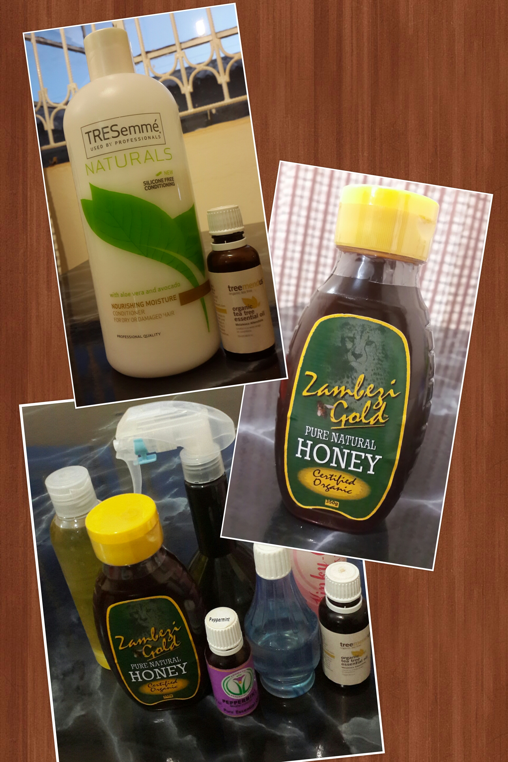 This is simply Tresemme Naturals silicone free conditioner with some tea tree essential oil. Emphasis on the silicone free because silicones cause product build-up on the hair and scalp. These are chemicals which are designed to stick to the hair. These cause irritation to the hair and scalp because they prevent moisture from penetrating the hair shaft and also suffocate the scalp. Tea tree oil is one of the best essential oils because it works against fungus, bacteria and viruses. If you are mixing your own, do not add tea tree oil to the large bottle of Tresemme Naturals Conditioner. Please mix a smaller amount in a separate container. You can buy Tresemme Naturals and Tea Tree essential oil from Pick n Pay or Spar especially. Sometimes Shoprite as well.