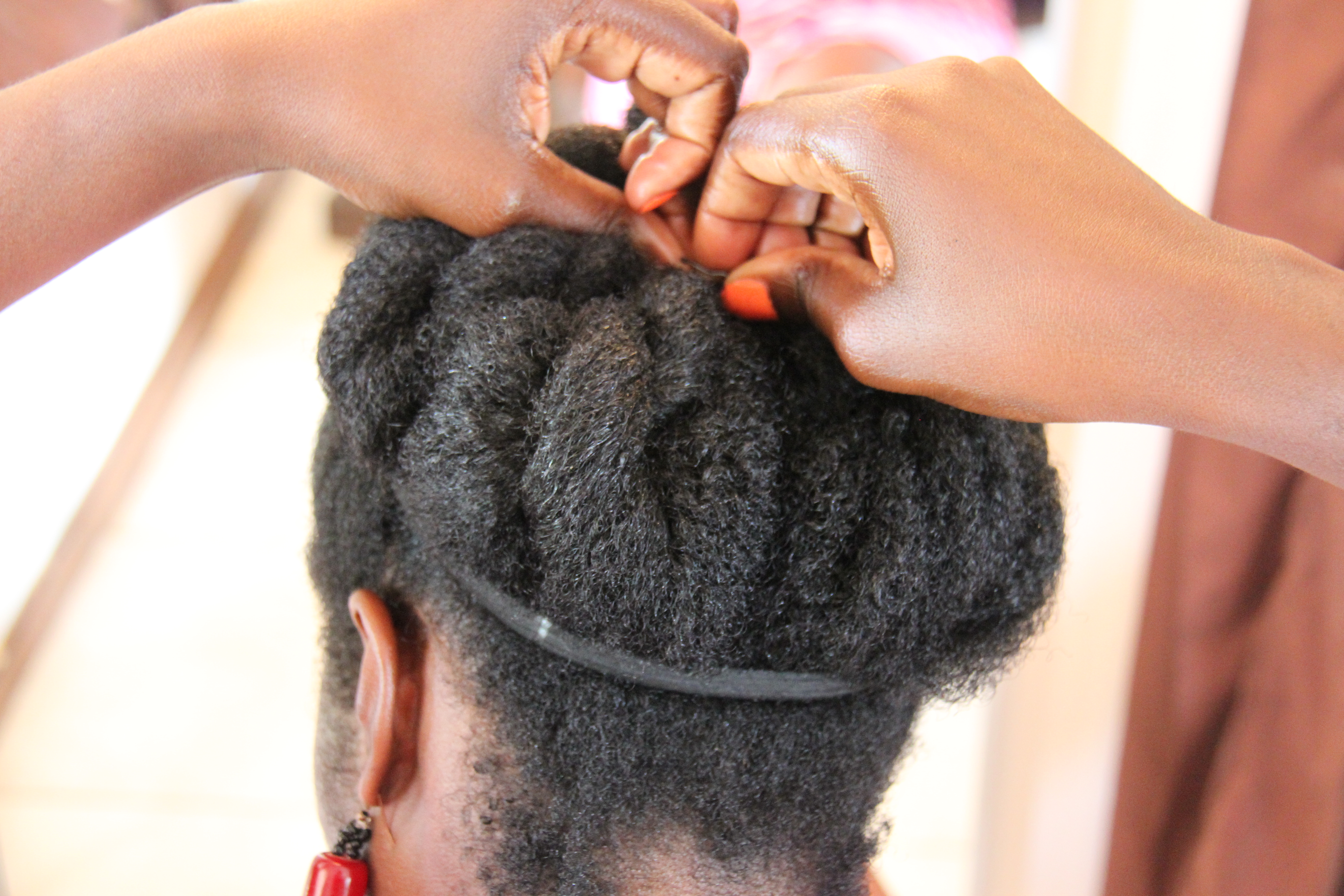 Step two: Create some loose, chunky twists at the back and loosely pin them into place. Play around with the twists to create the look you desire. I prefer a bigger puff.