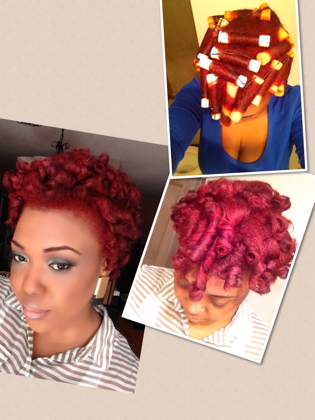 2. Just dyed my hair bright red and decided to do a perm rod set in the front and roll and tuck in the back.