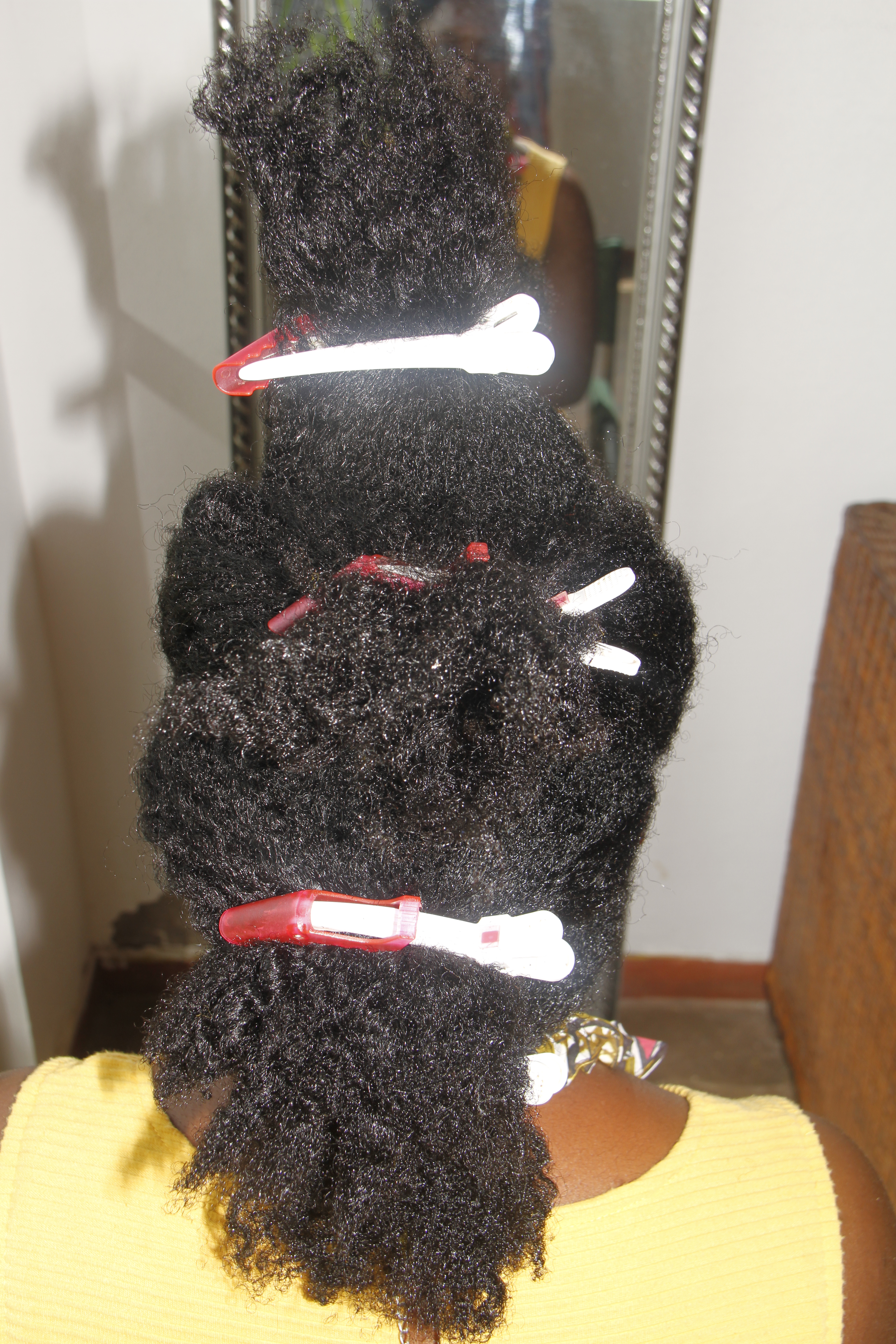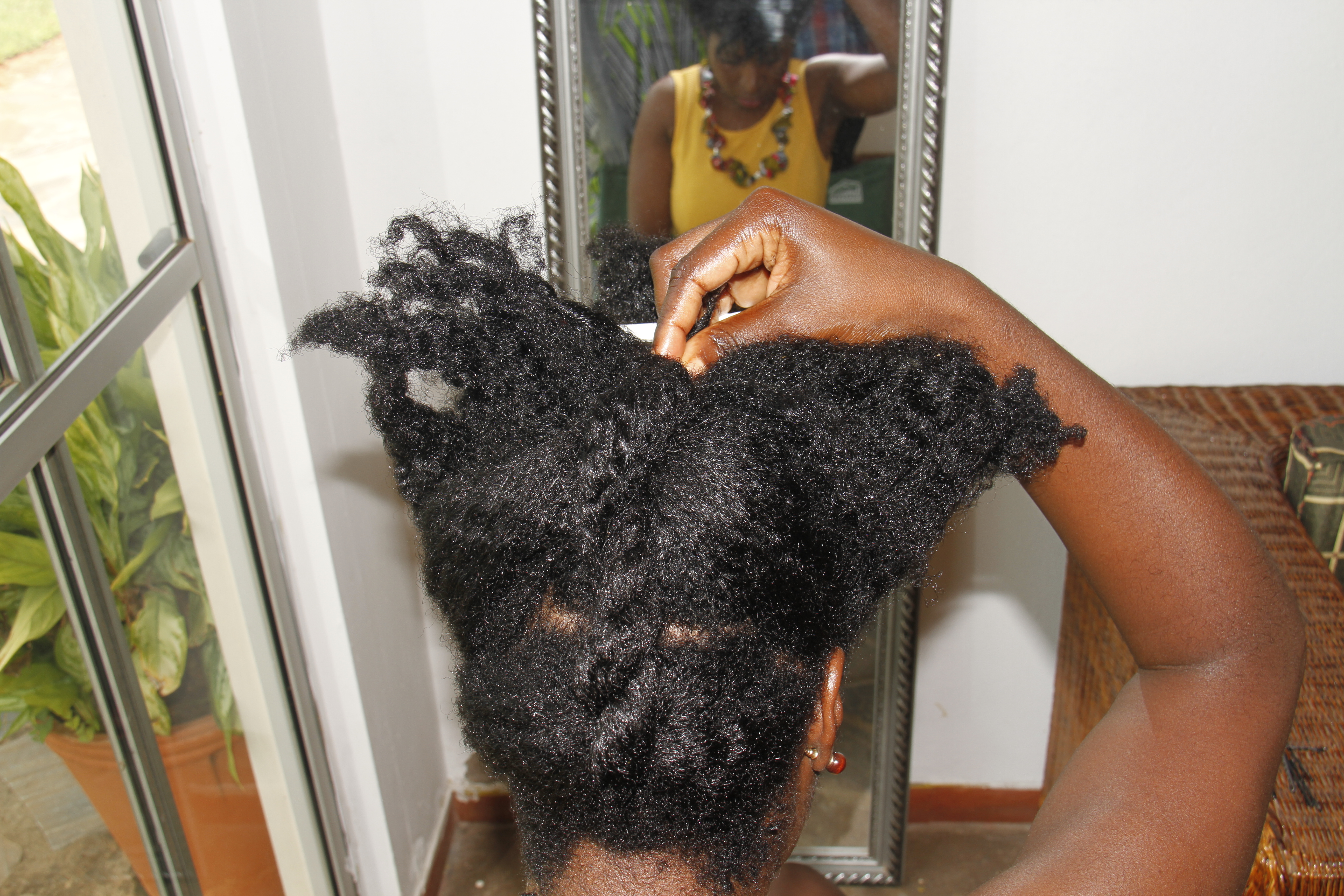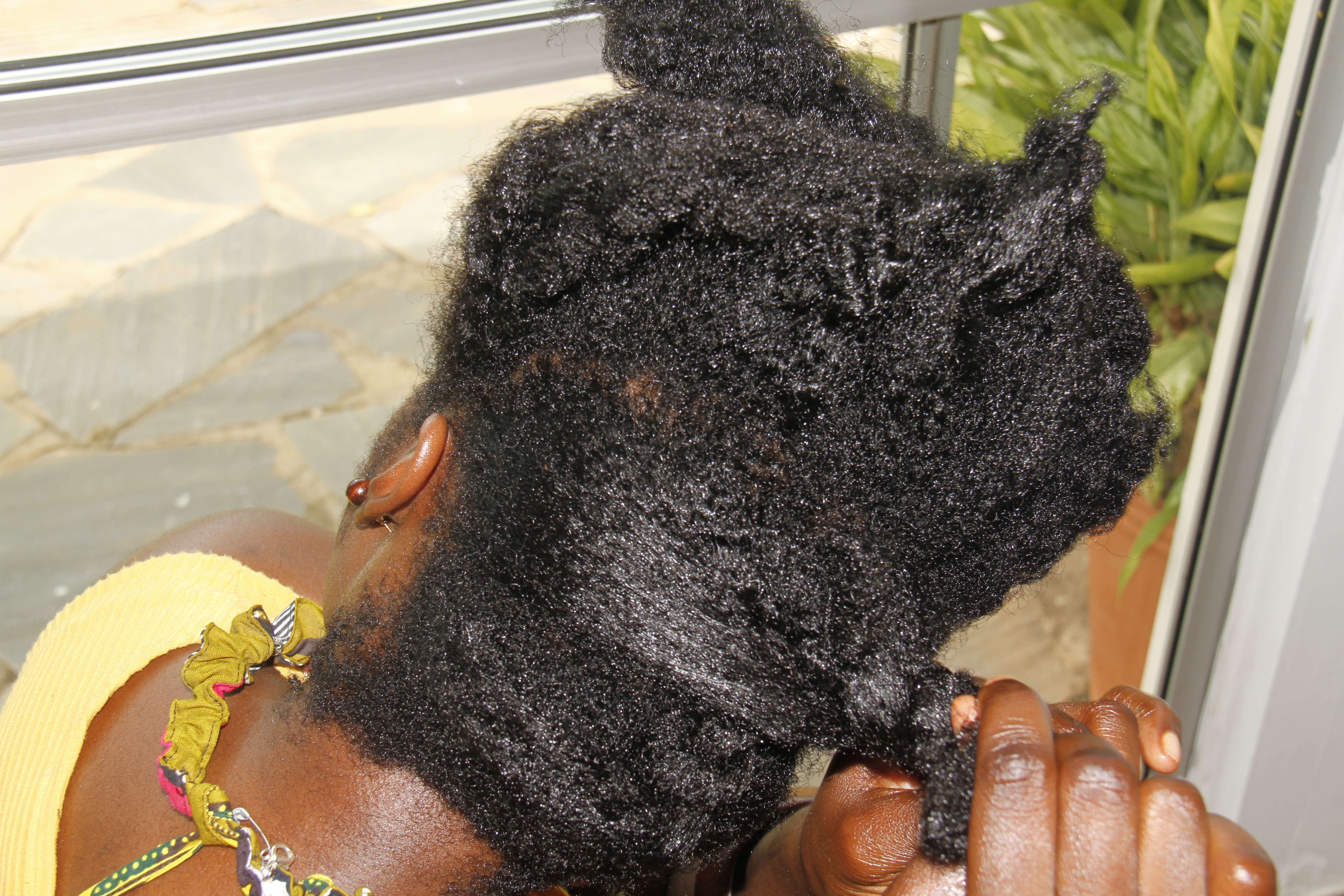 This is actually a very similar, less dramatic, hairstyle to the one I did in Week 4 of this low manipulation, protective style challenge. The weather in Lusaka is turning a bit and I may need to do a little more spritzing this week to keep my hair moisturised.