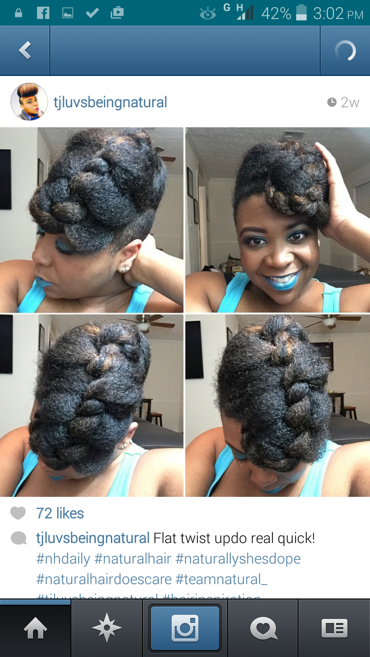 When I’m not looking up hairstyles on Pinterest then I’m probably scrolling through Instagram. Recently, I discovered TjLuvsBeingNatural and instantly fell in love. Her styles are simple, yet look intricate. She’s enormously creative and I’ve already earmarked a few more of her other styles to try later on during this challenge, although I’m not quite brave enough to go the whole hog and shave the sides of my hair.