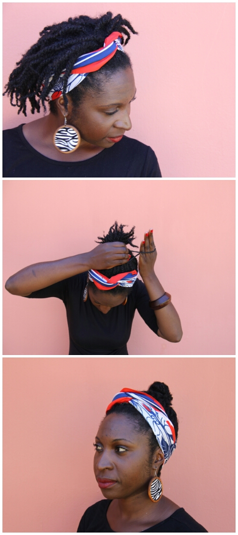 There you have it; 6 scarves, 9 hairstyles! Is there any better way to disguise your shabby twists?