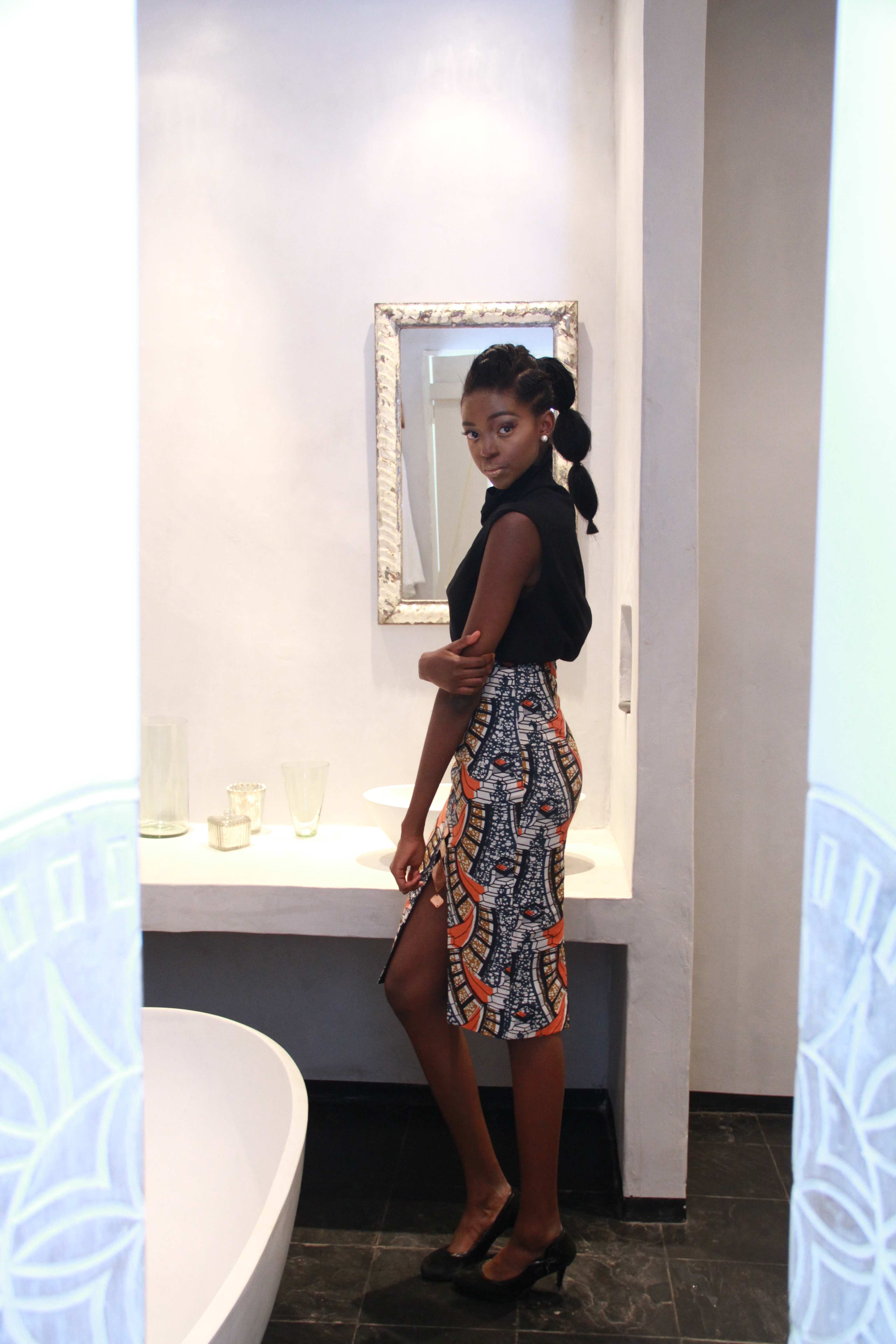This hairstyle was a combination of mukule (cornrow), flat twists and an exaggerated ponytail. The model had relaxed hair but we decided to demonstrate some popular natural hair styles.