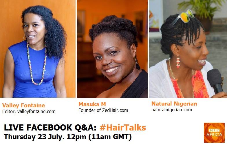 This week has been a busy one in the African Natural Hair community. BBC Africa have been sharing a series of articles, pictures and videos all about natural hair. Today, Thursday 23rd July, 2015 at 1300 Central African Time (CAT), ZedHair’s Masuka M., will feature on a Live Facebook Q&A on the BBC Africa Facebook page. Also featuring on the panel will be Natural Nigerian and Valley Fontaine. Visit the BBC Africa Facebook page her for more information.