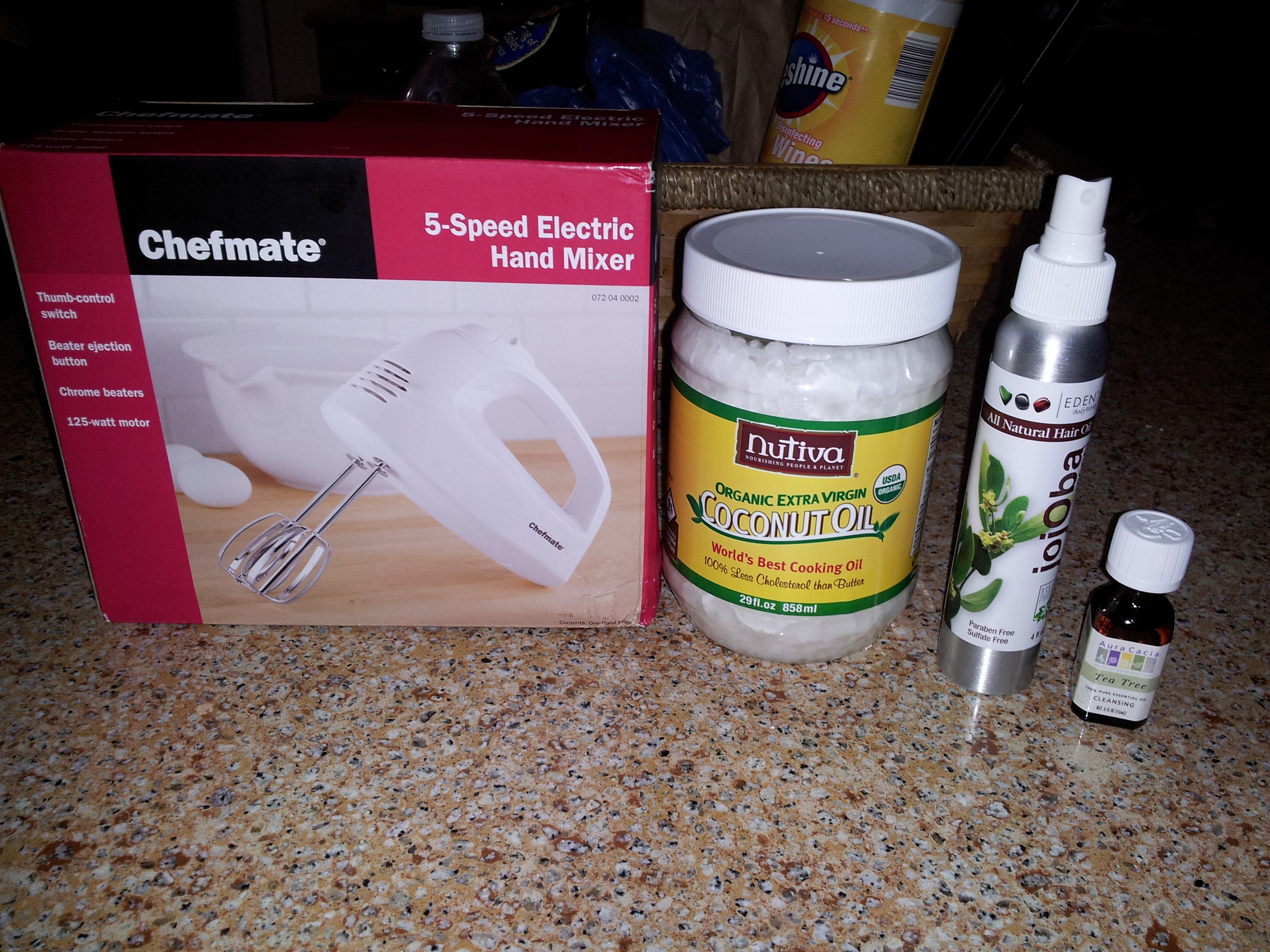 1.5 oz of jojoba oil (I had a mixture of jojoba and sweet almond oil)