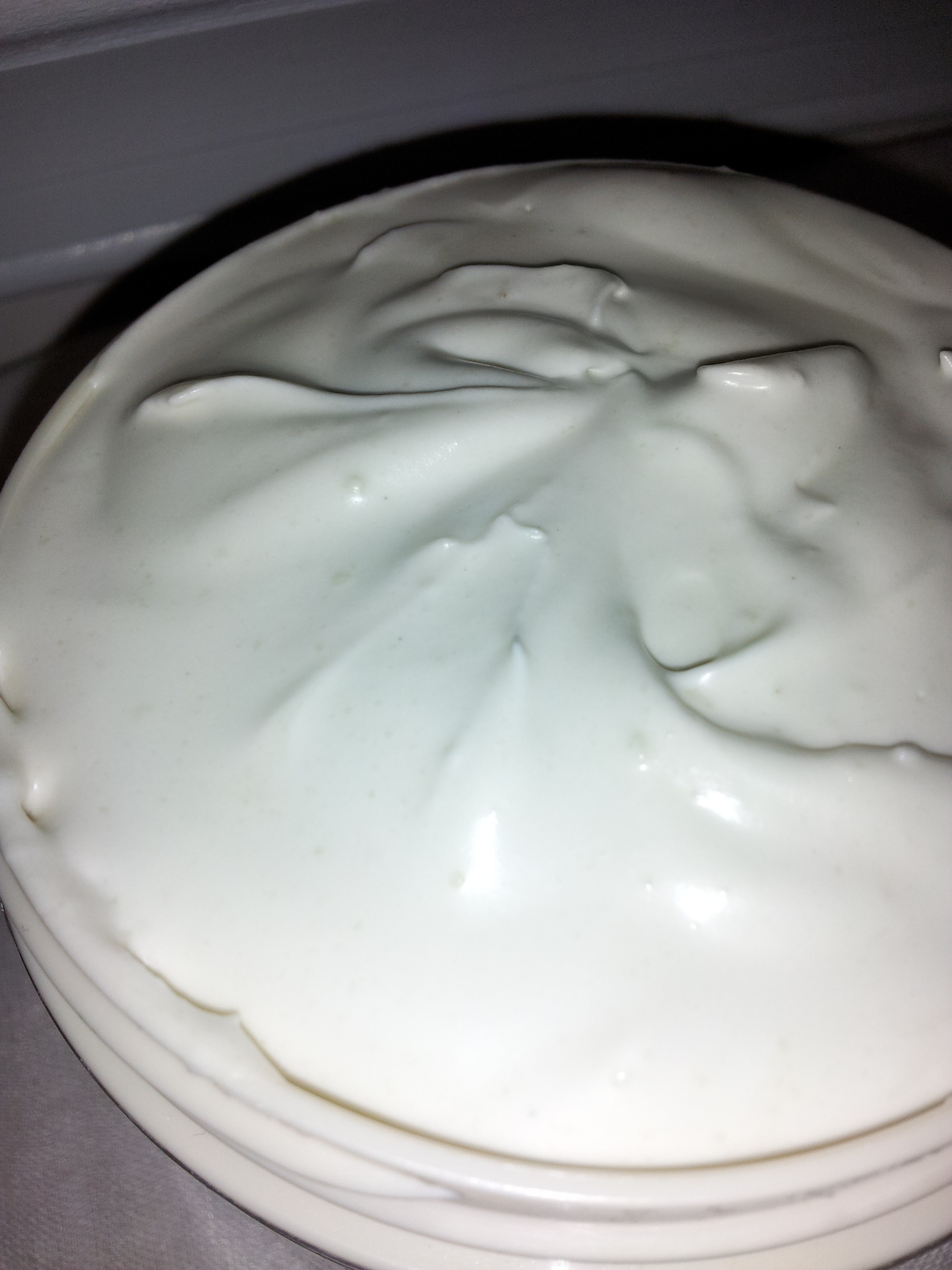 It took some mixing to get it to look like this which is nothing like the beautiful picture in the original article and by the end of the process, I had way more shea butter souffle than I knew what to do with. I gave a lot of it away. Why? I found it very greasy and while I still have some of it left for my own personal use, I don’t use very much of it and I don’t use it often. I think it would be a great sealant after a wash and deep conditioning session. Or a good deep conditioner!