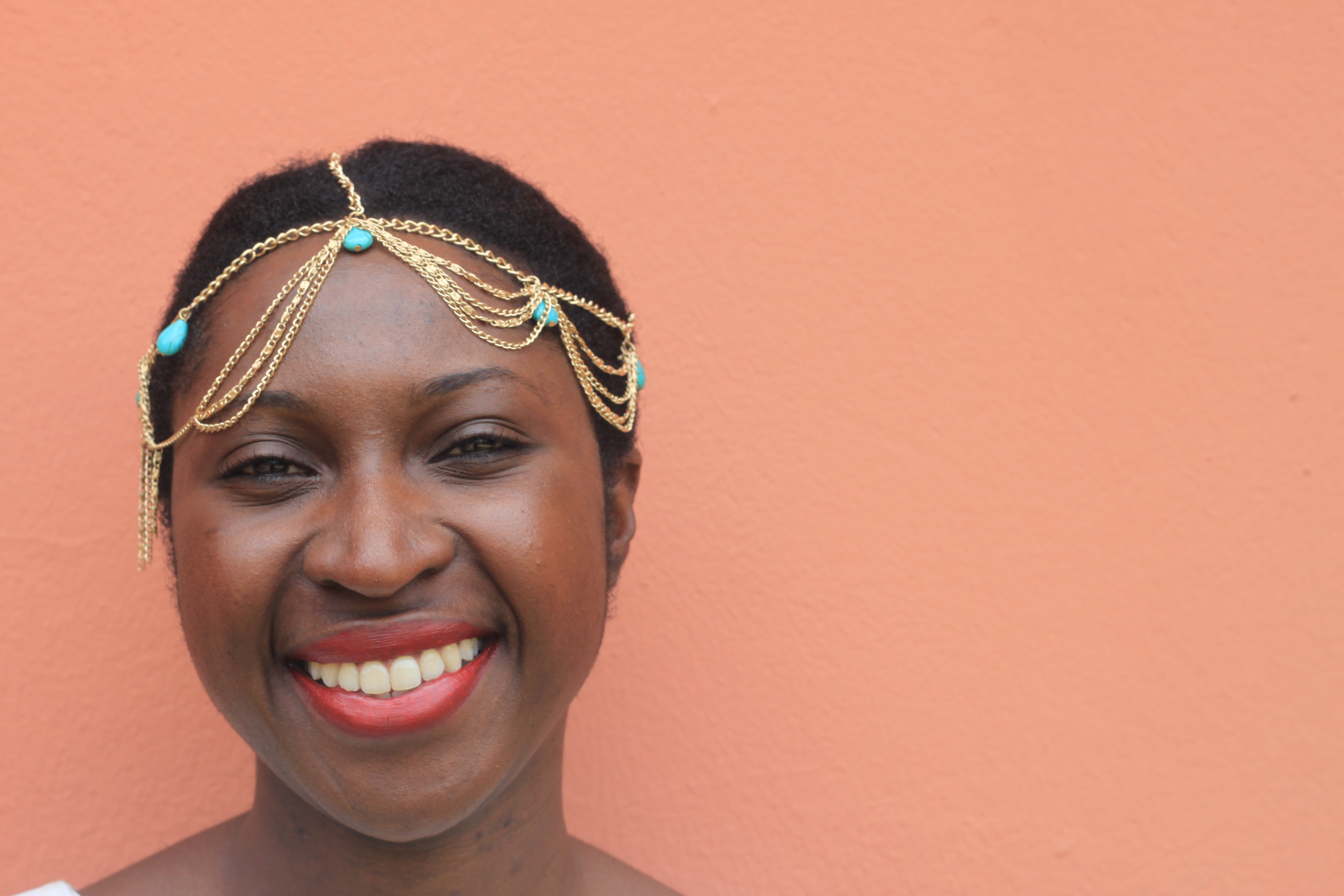 I hardly ever wear styles this sleek and had quite a hard time gathering all my hair into a smooth bun and snapped to of my hairbands. The hair was stretched using braids after I’d washed and conditioned it. I tucked and pinned the ends of my hair into a slightly textured bun. I added a bit of bling for some flair.