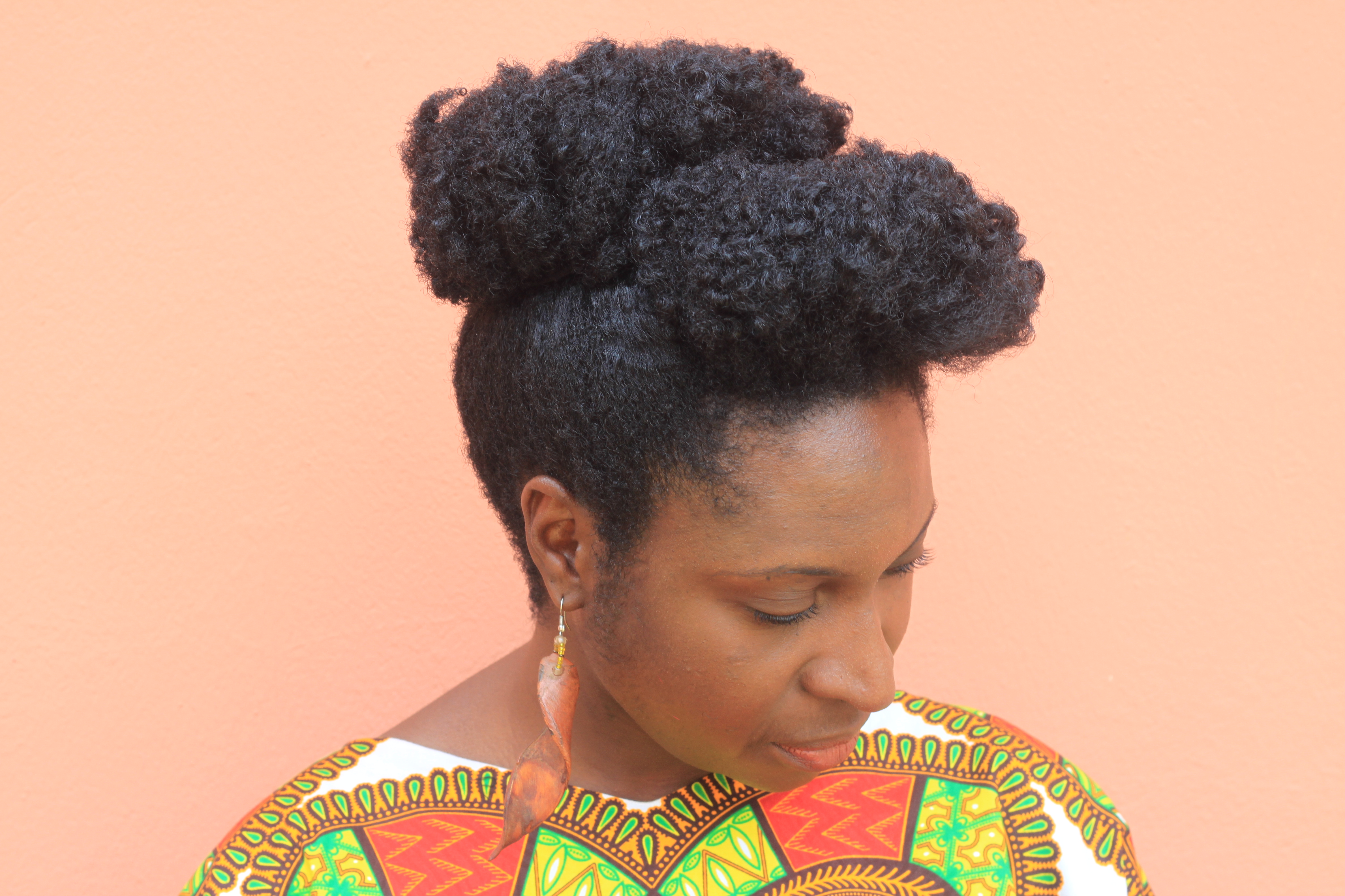 This week’s hairstyle is one that I wore a lot during my third year as a natural mostly because I couldn’t yet create a full puff but liked the idea of having one. The hairstyle is exactly the same but the hair is fuller so it creates a slightly different look.