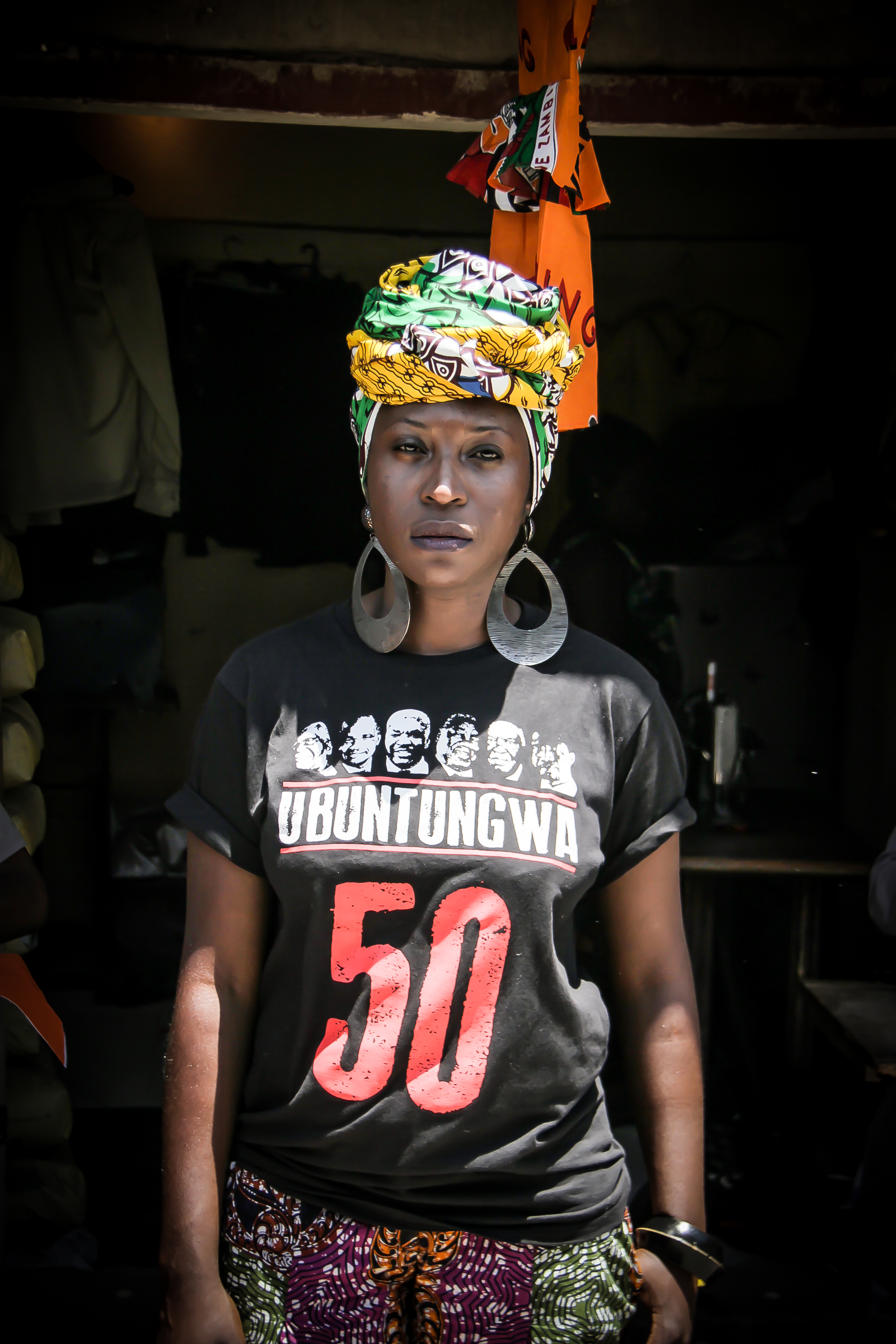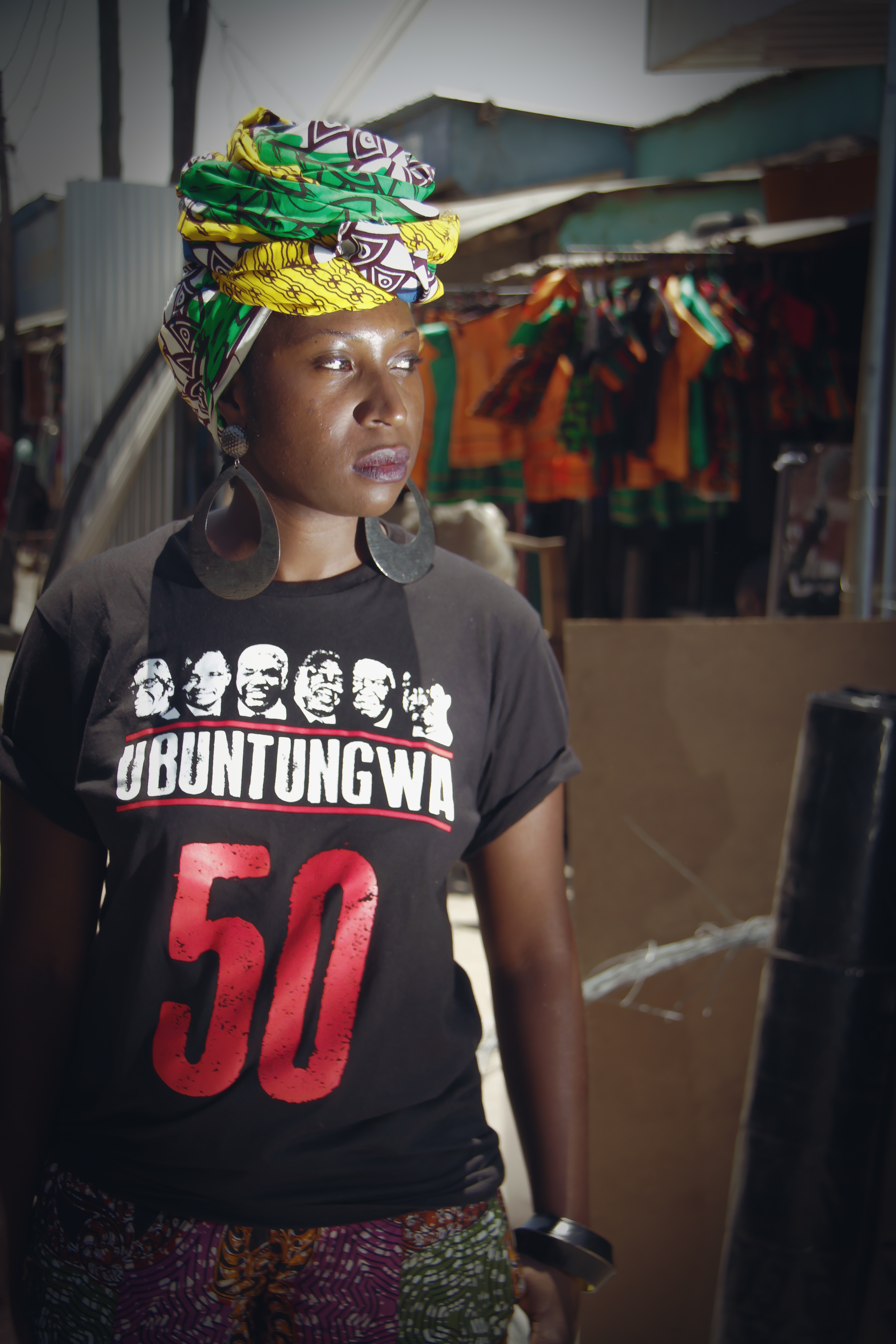I thought it would be fun to shoot at a market this week. It has become common practice to create special Chitenge’s to mark national occasions and Mtendere Market here in Lusaka was buzzing with tailors creating outfits from Green, Orange and Red Chitenge’s all marked with national emblems such as the coat of arms or the eagle that is found on the Zambian flag. I’m not a big fan of wearing Chitenge’s that closely resemble our flag so I didn’t use any of those Chitenge’s for my headscarfs.